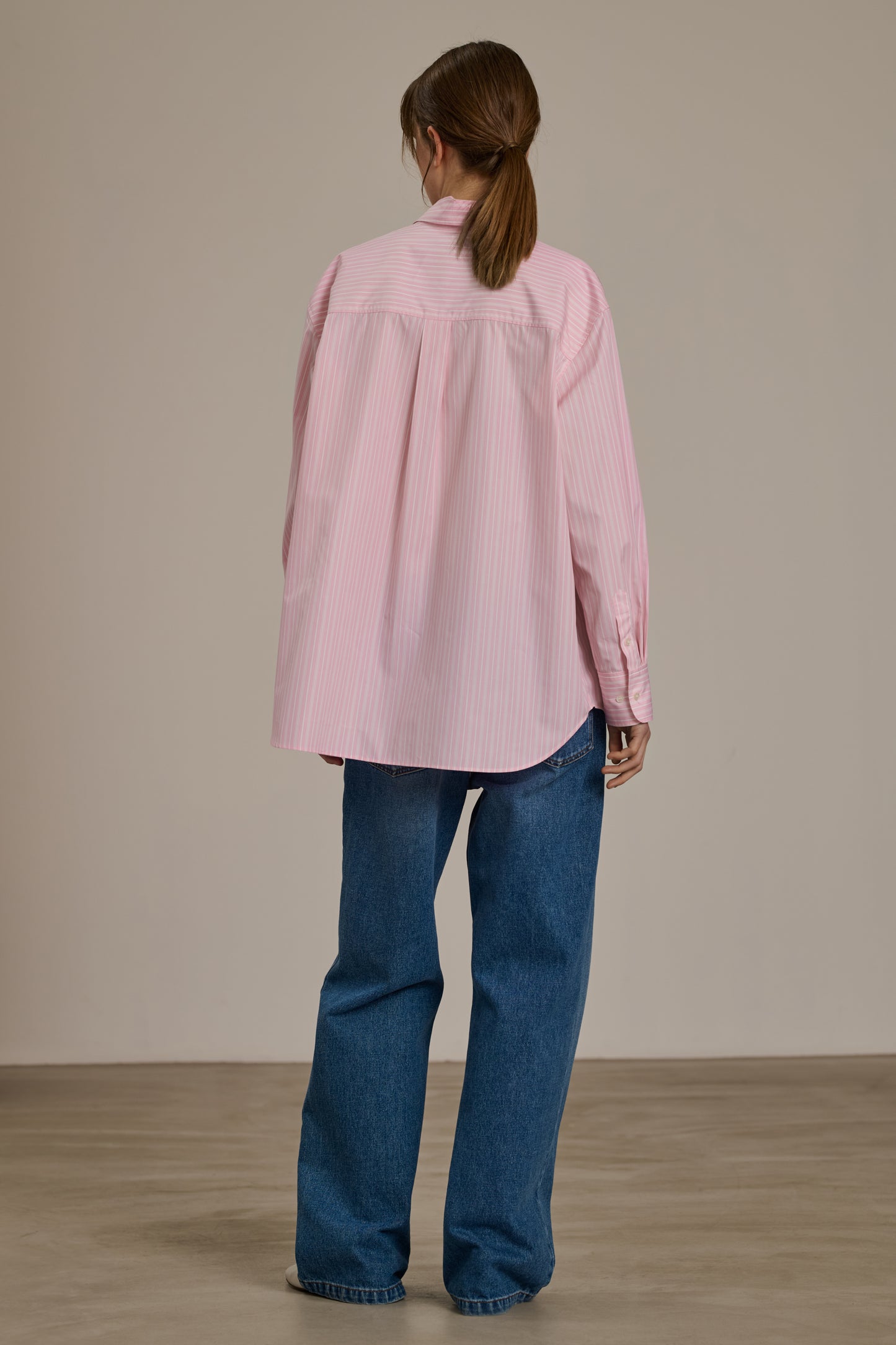 CARLOTTA es una camisa de popelina a rayas que apuesta por un corte oversize inspirado en el guardarropa masculino, para un estilo desenfadado y elegante.