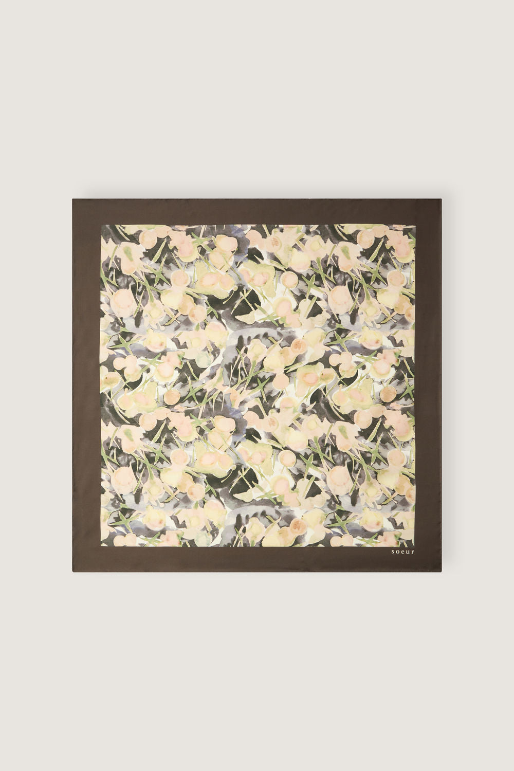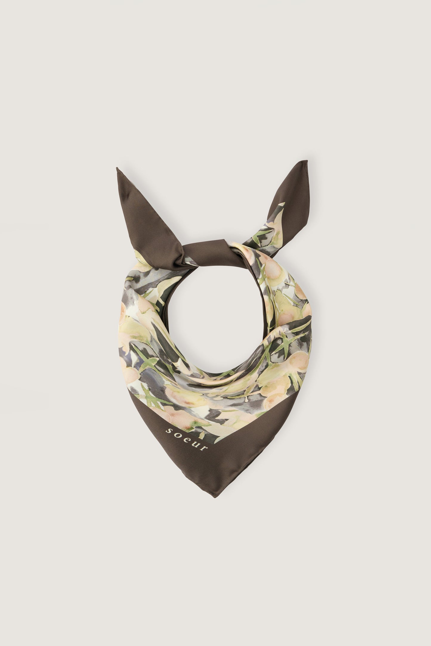CAPUCINE es un pañuelo de seda estampada. Esencia de nuestro vestuario en Soeur, nuestros pañuelos de seda aportan un toque de elegancia y originalidad a cualquier conjunto: atados alrededor del cuello, sobresaliendo discretamente del cuello de una camisa o jersey, atados al asa de un bolso, o usados como pañoleta en la cabeza...