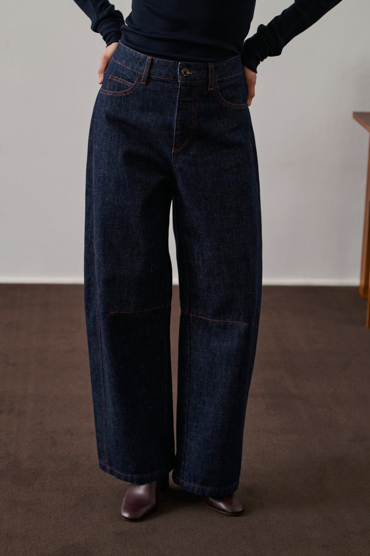 Pantalón corte globo azul crudo