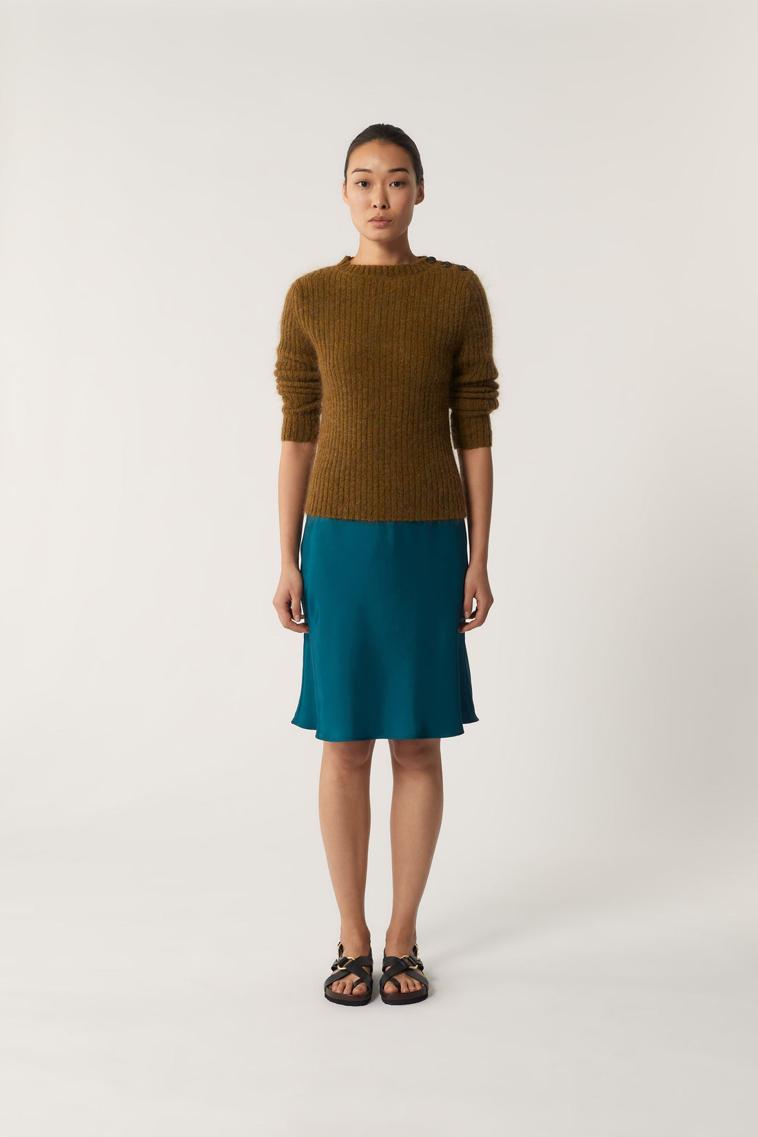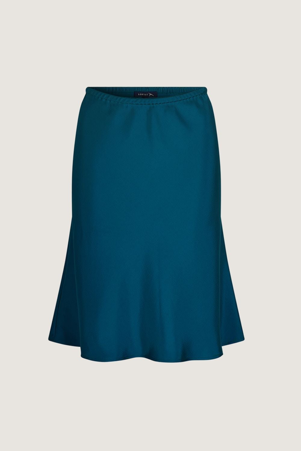 - Falda corta al bies, ligeramente acampanada