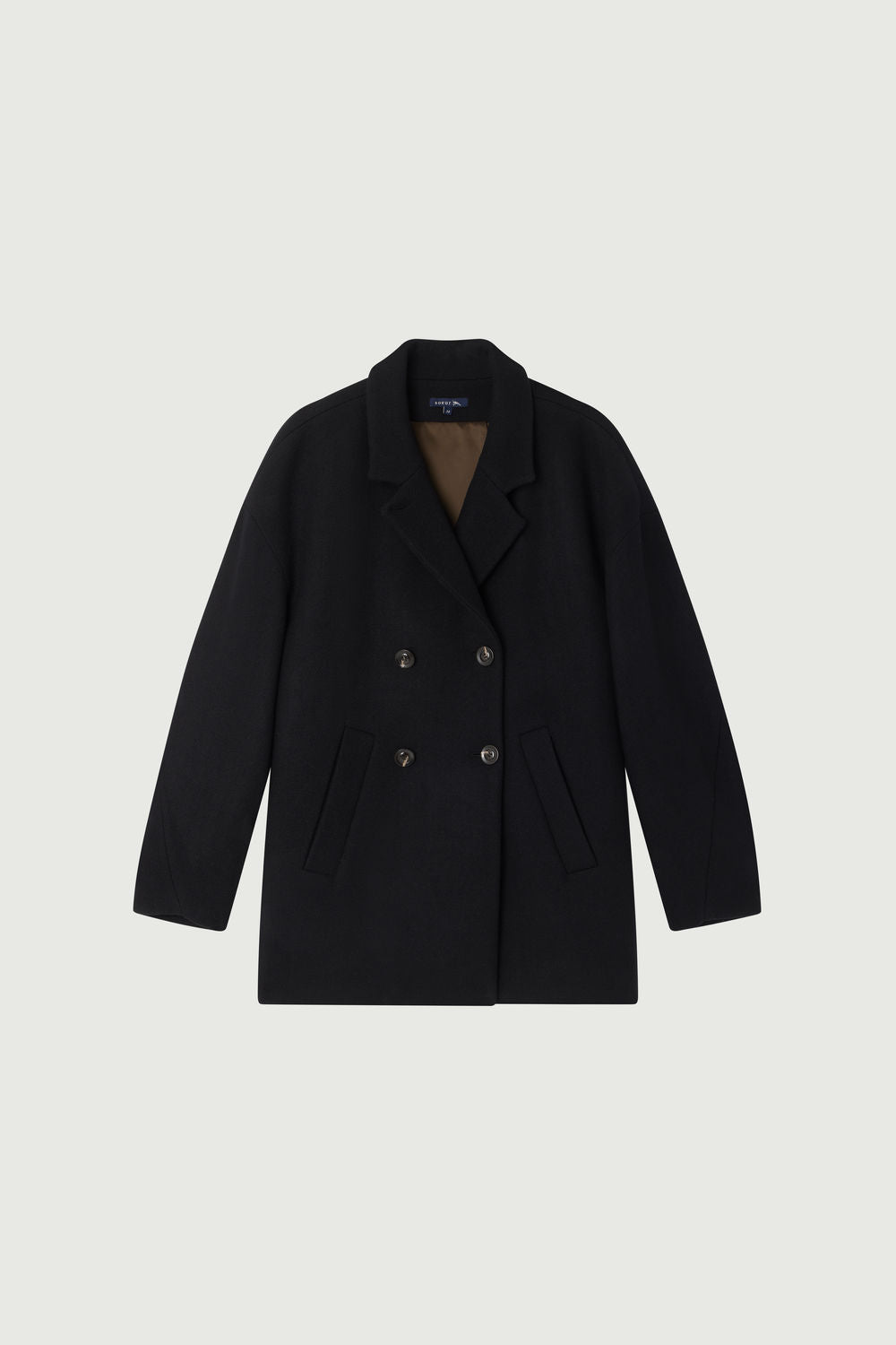 SALFORD es un abrigo corto de estilo caban con una silueta amplia y redondeada. Confeccionado en tweed doble negro de lana. Se puede llevar con el cuello abierto o cerrado. Equipado con doble botonadura y dos bolsillos ribeteados en la parte delantera, combina elegancia y atemporalidad con mangas redondeadas para un confort óptimo.