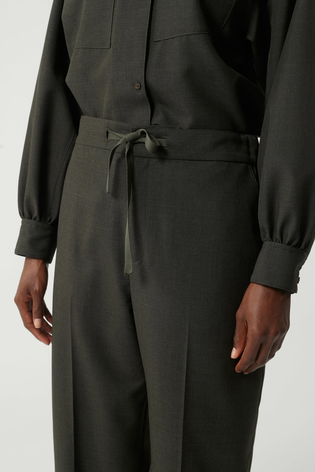 Pantalón de tela de lana chiné caqui