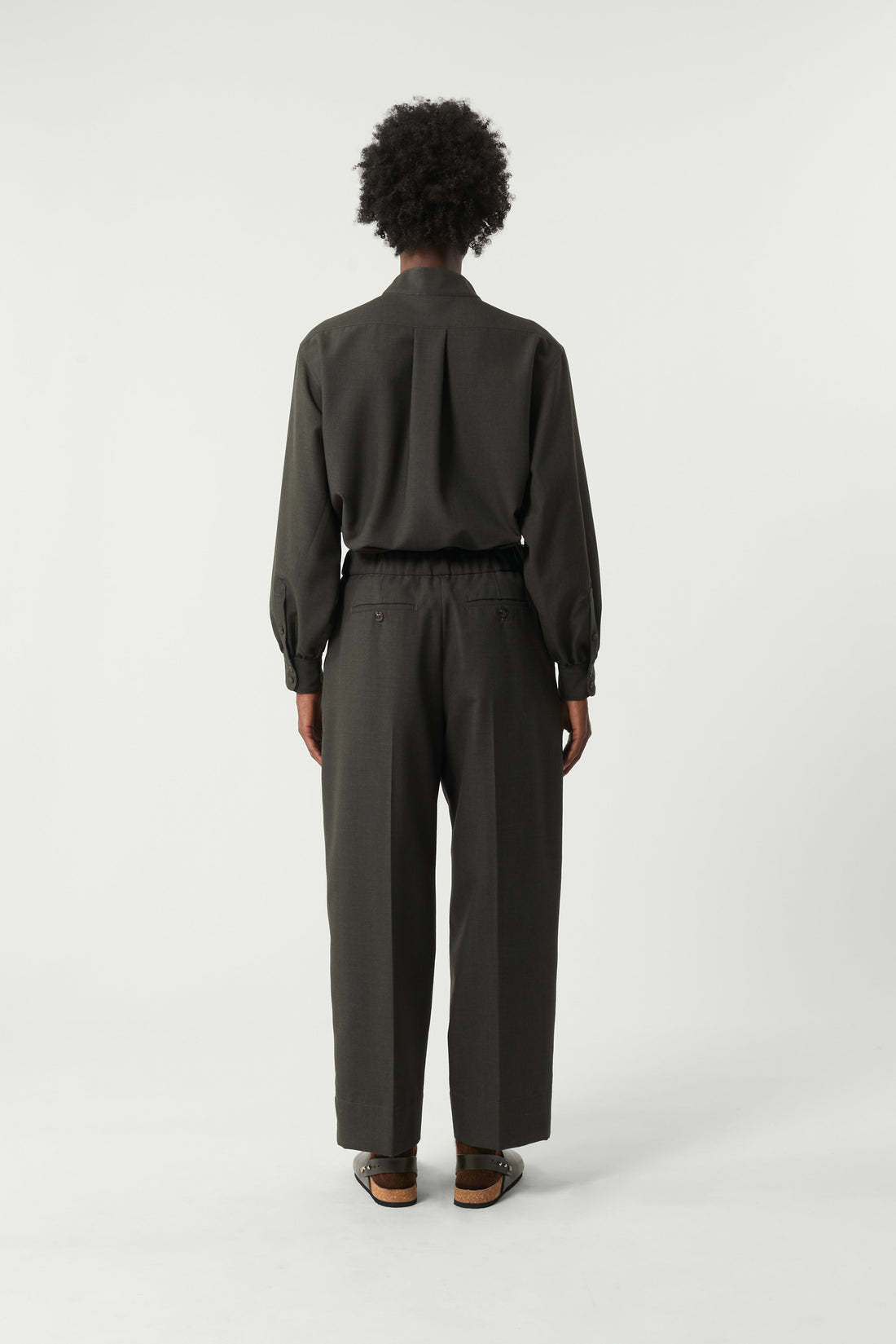 Pantalones de lana jaspeada caqui caqui