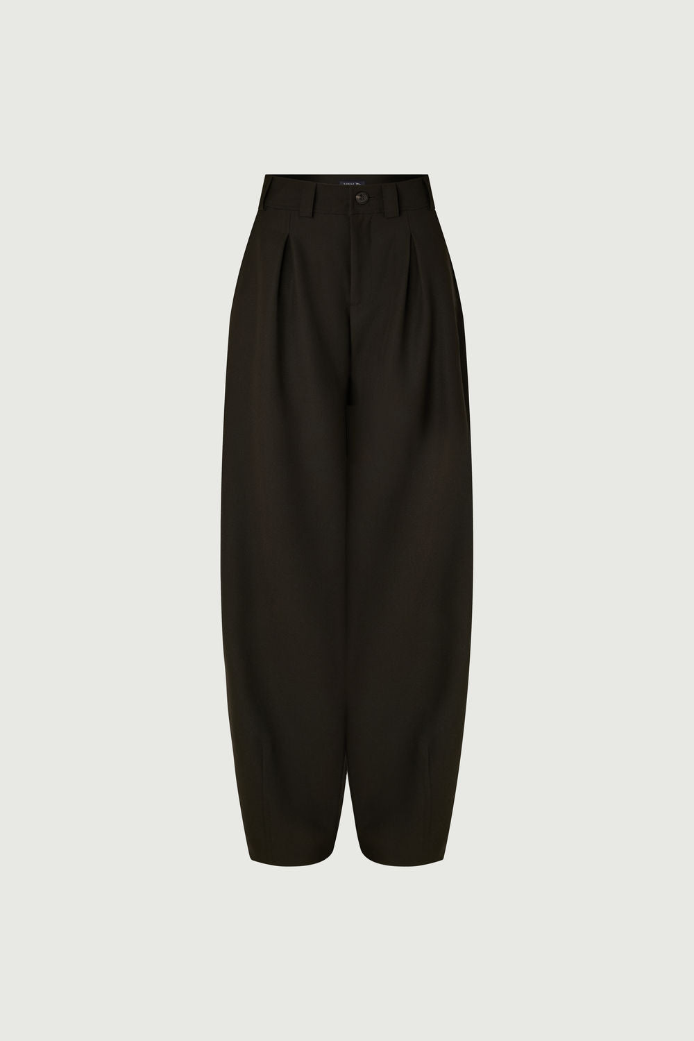 TIMON es un pantalón con pinzas para llevar a cintura alta, con cinturón y blusón, o a cintura baja sobre las caderas. Crea un efecto de volumen controlado, ideal para un vestuario oversize. Combinar con el pantalón TIMON para un total look otoñal en gabardina de lana.