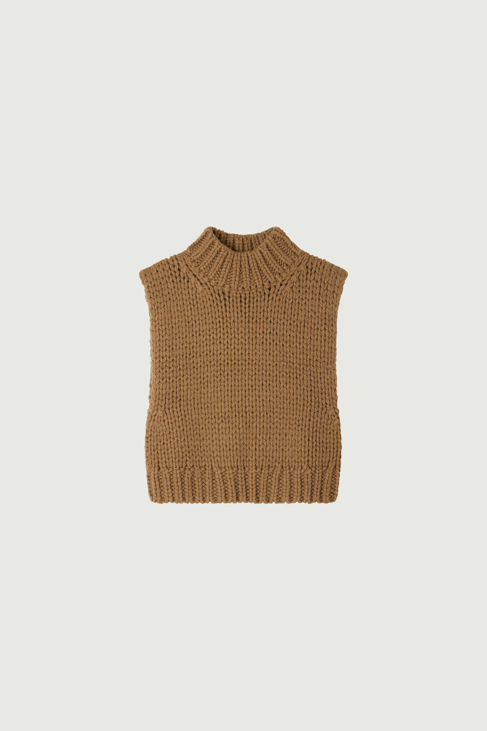 BRETT es un jersey sin mangas de lana, perfecto para jugar con las superposiciones. Su punto grueso le da un efecto de tejido a mano. En hilo de lana virgen, se puede llevar tanto sobre la piel como en capas para abrigar un conjunto. Su color camel combina fácilmente con todo.