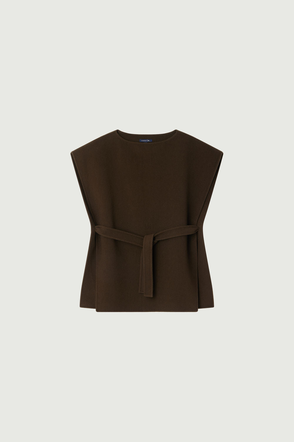 CIEL es un peto sin mangas de tejido de lana cálido perfecto para jugar con las superposiciones. Su corte es amplio, sus acabados invisibles, se ciñe con botones en los lados y/o un cinturón para anudar, creando un efecto de blusa con la tela. La lana de doble faz es especialmente aislante, mantiene el calor mientras es flexible y suave.