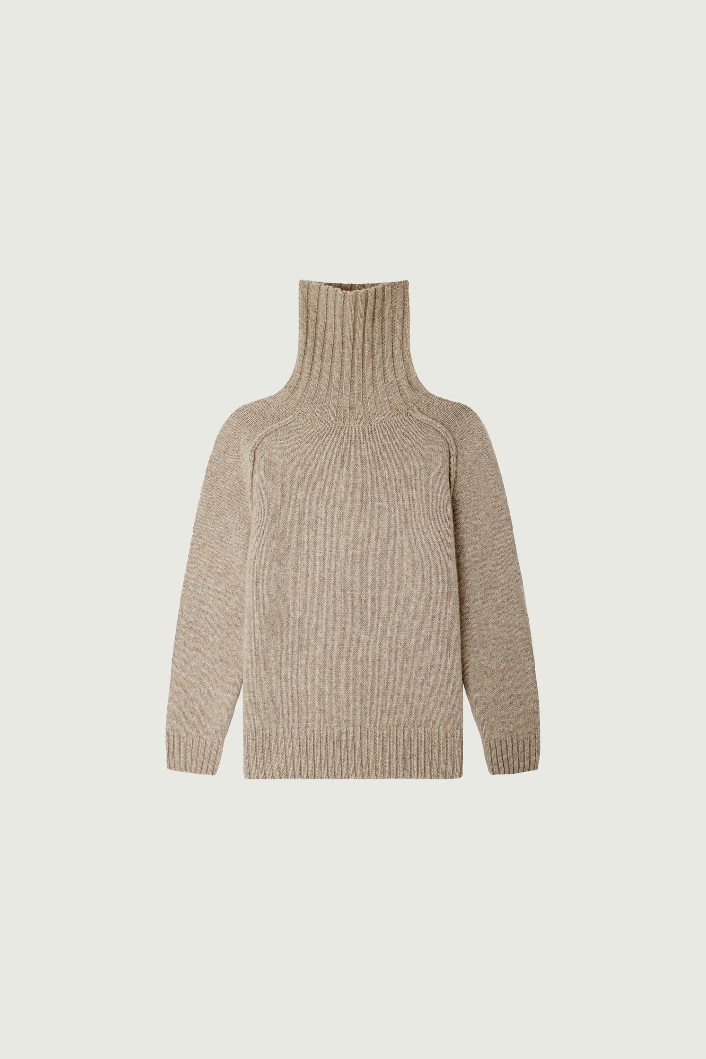 Jersey de cuello alto en lana y alpaca gris/beige jaspeado