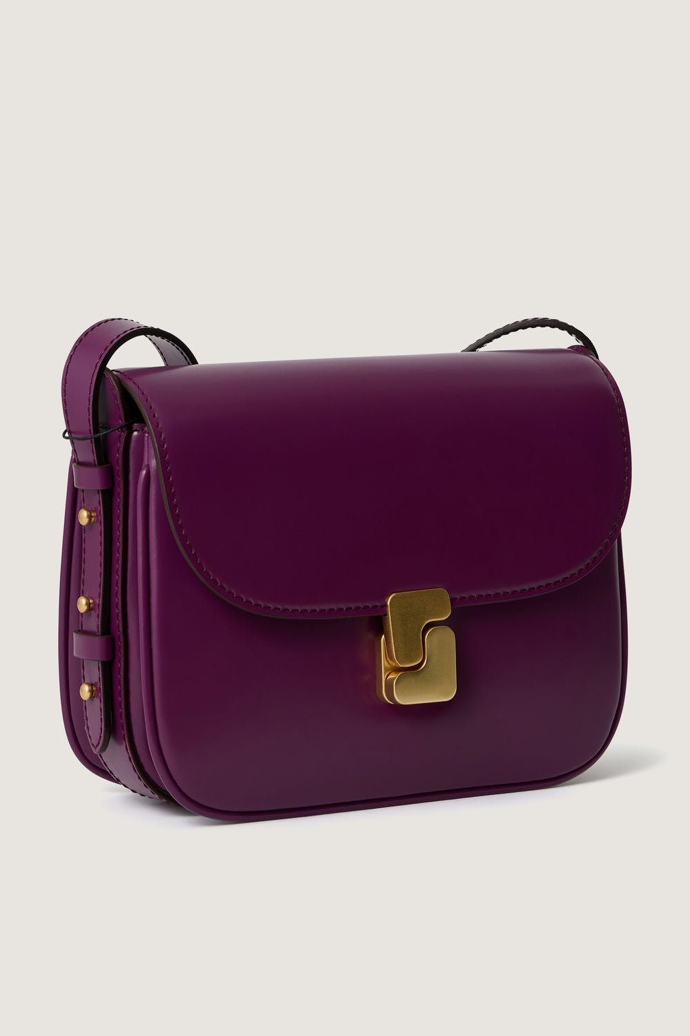 Bolso monograma «S» en piel glacé púrpura morado