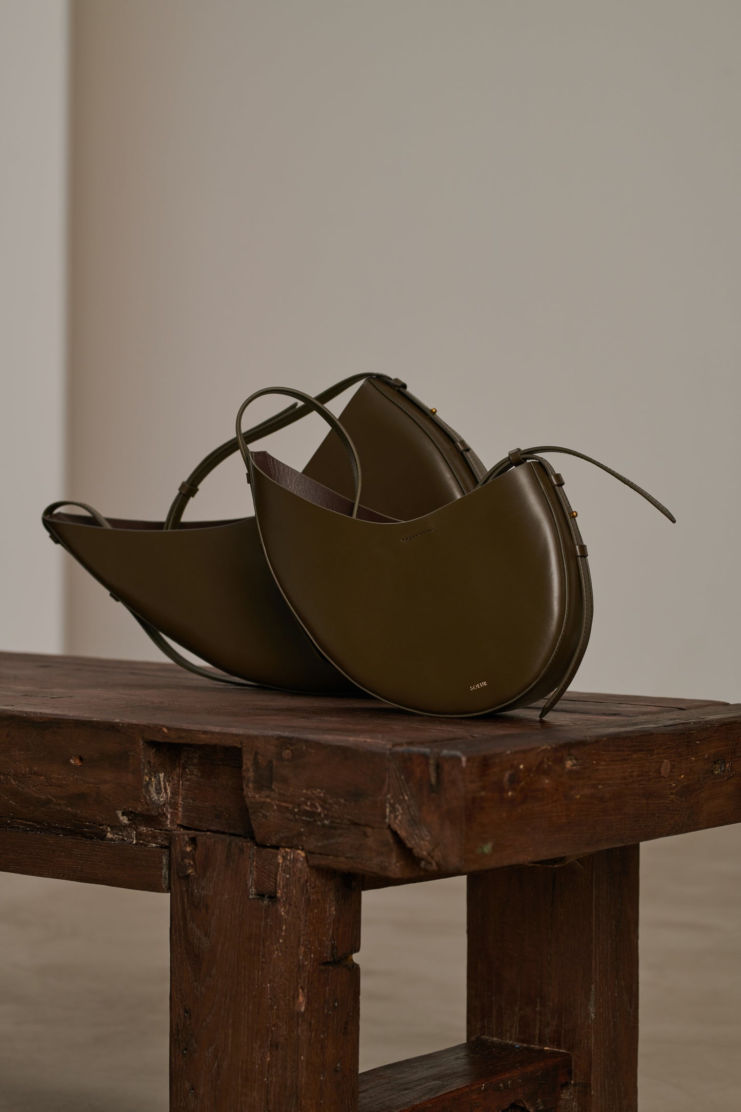 bolso winona Bolso de cuero liso color caqui
